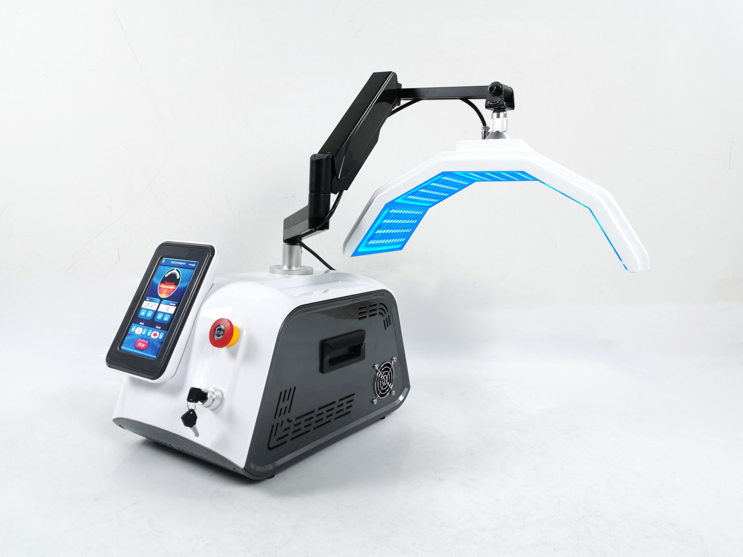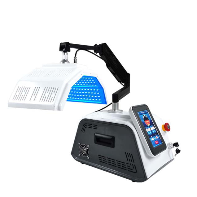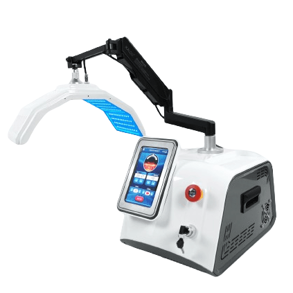 an innovative PDT (Photodynamic Therapy) light treatment device engineered to set new standards in skincare technology. This meticulously designed device blends cutting-edge functionality with a sleek, contemporary aesthetic, prioritizing stability and easy mobility without wheels, making it lightweight and perfectly suited for placement on specialized trolleys within treatment environments.