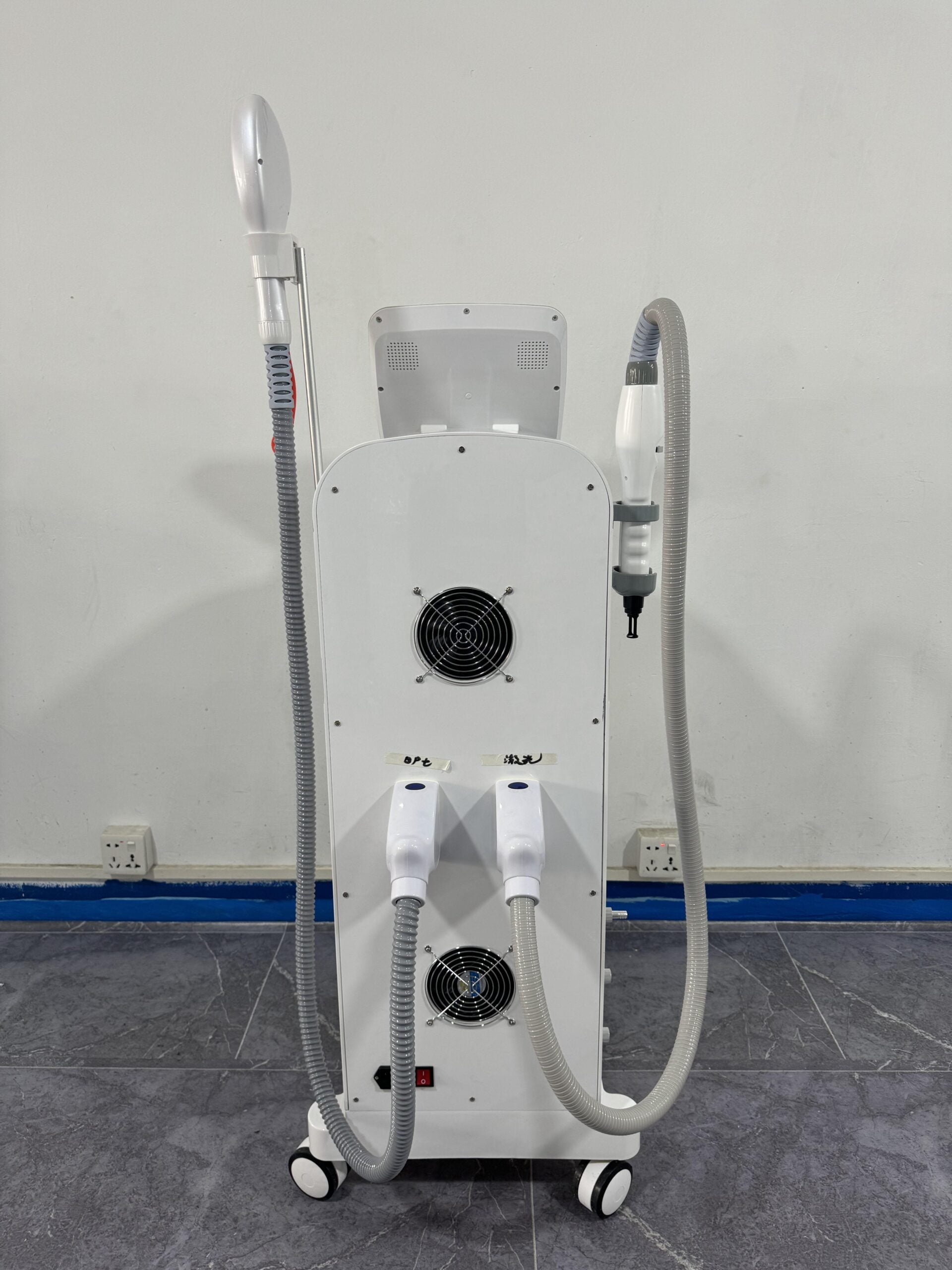a sophisticated dual-function aesthetic device designed to meet diverse treatment needs with precision and efficiency. This innovative system integrates two powerful handpieces: a Dynamic Pulse Light (DPL) applicator and a Nd Yag laser handpiece, ensuring comprehensive solutions for hair removal, skin rejuvenation, and more.