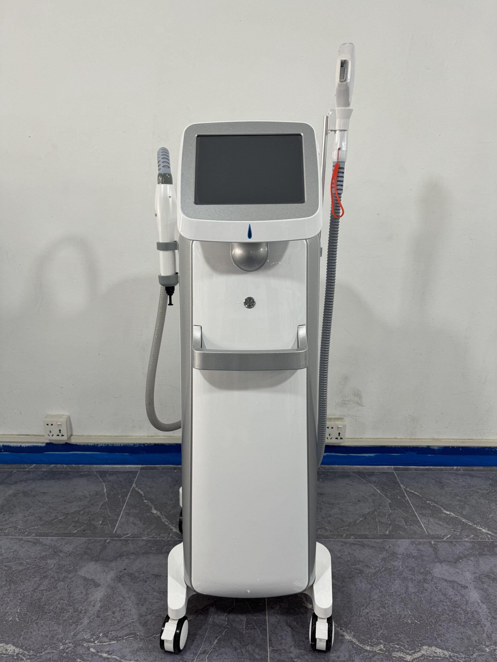 Vertical Design for Efficiency: Featuring a sleek vertical design, the SleekBeam-Dual optimizes space efficiency in clinics while enhancing ease of access during treatments. This ergonomic layout ensures seamless integration into clinic workflows, supported by the device's built-in wheels for effortless mobility between treatment rooms.